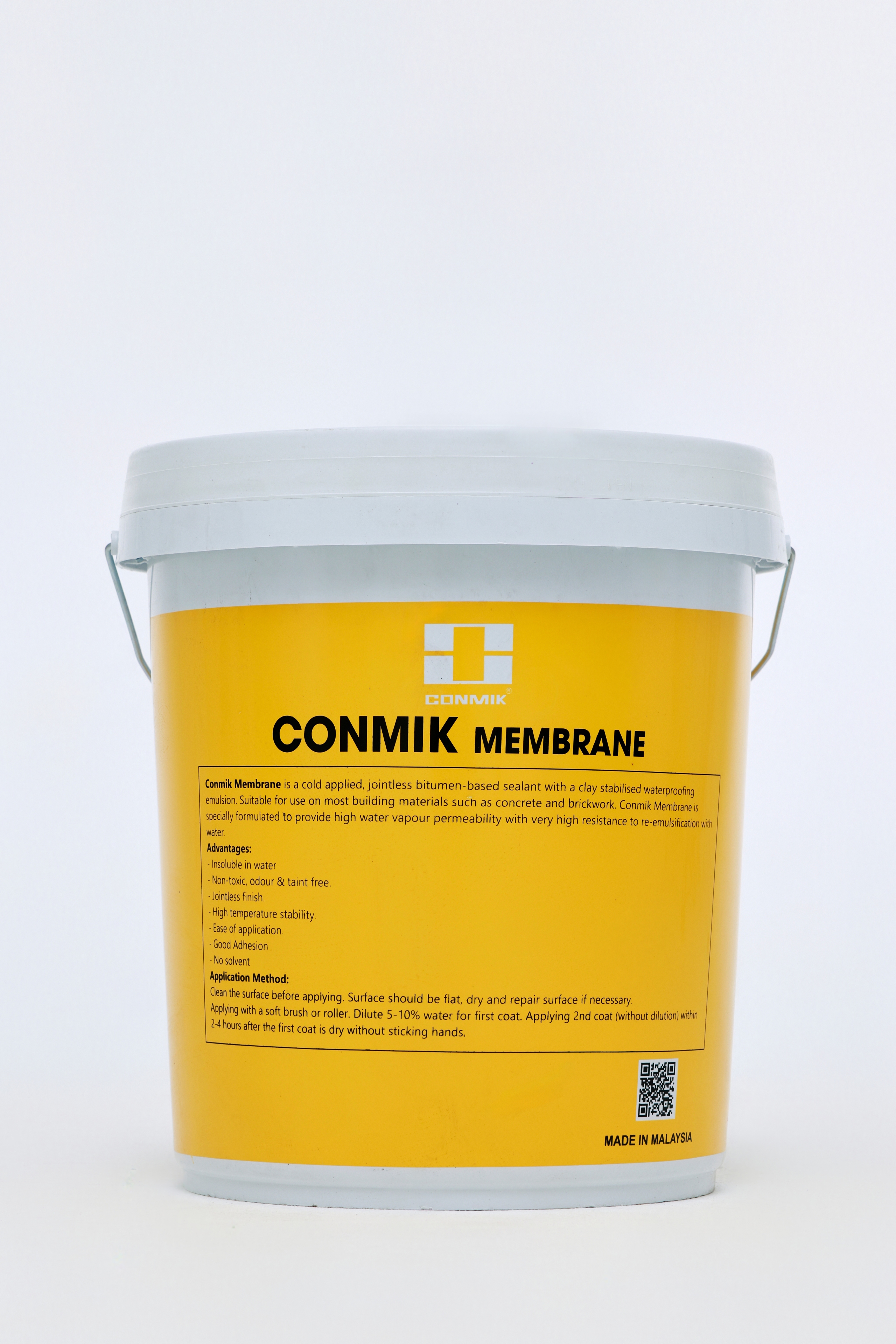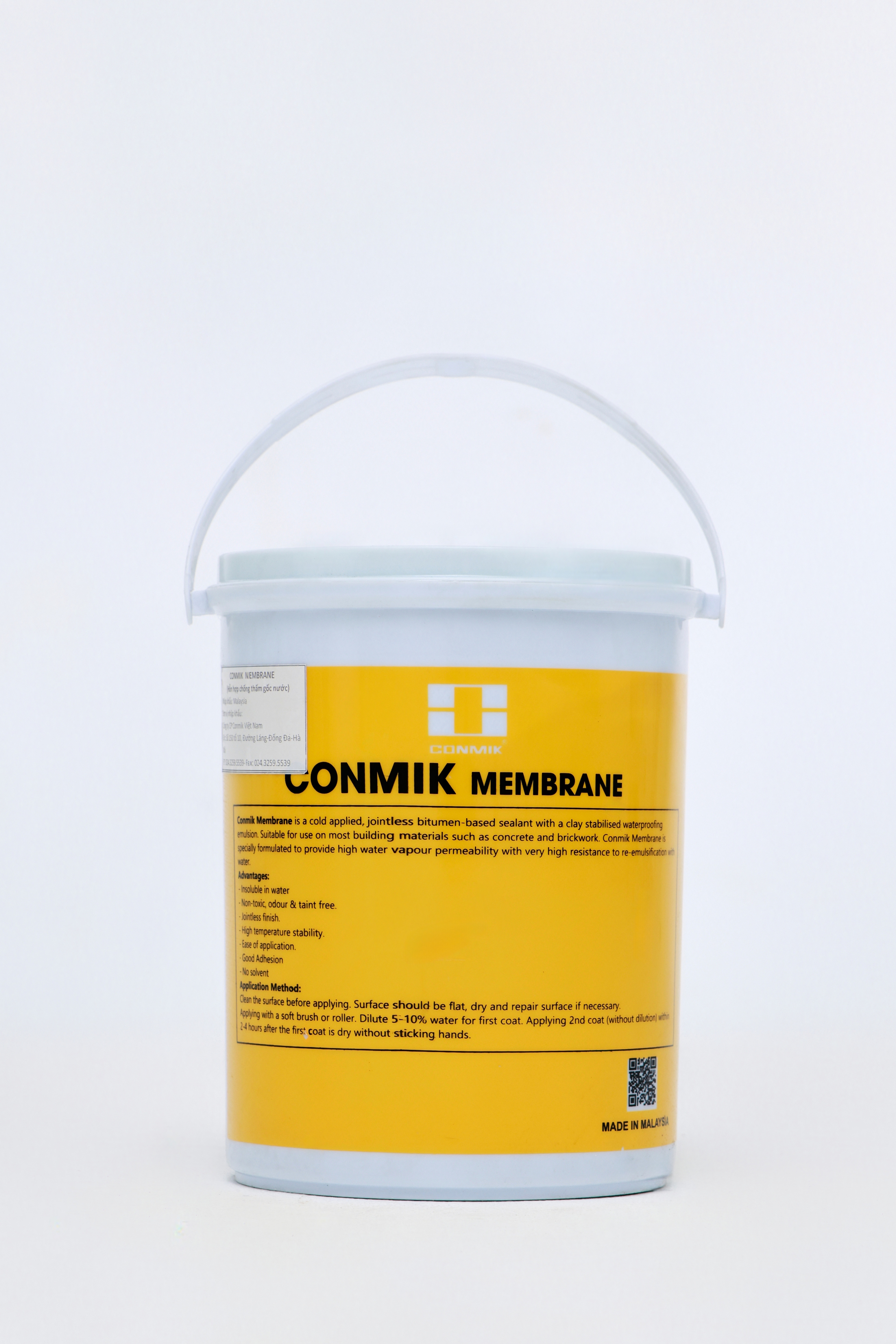 Conmik Membrane là vật liệu chống thấm gốc bitum không mùi thoáng, phù hợp sử dụng cho hầu hết vật liệu xây dựng như bê tông và gạch. Sản phẩm có khả năng thấm thoáng hơi nước cao.