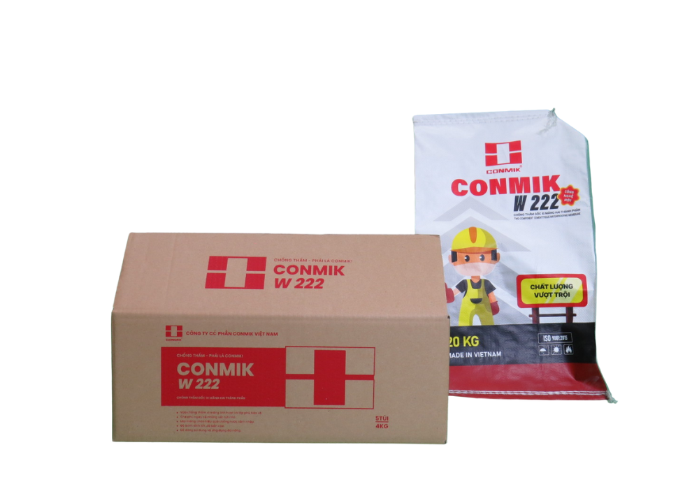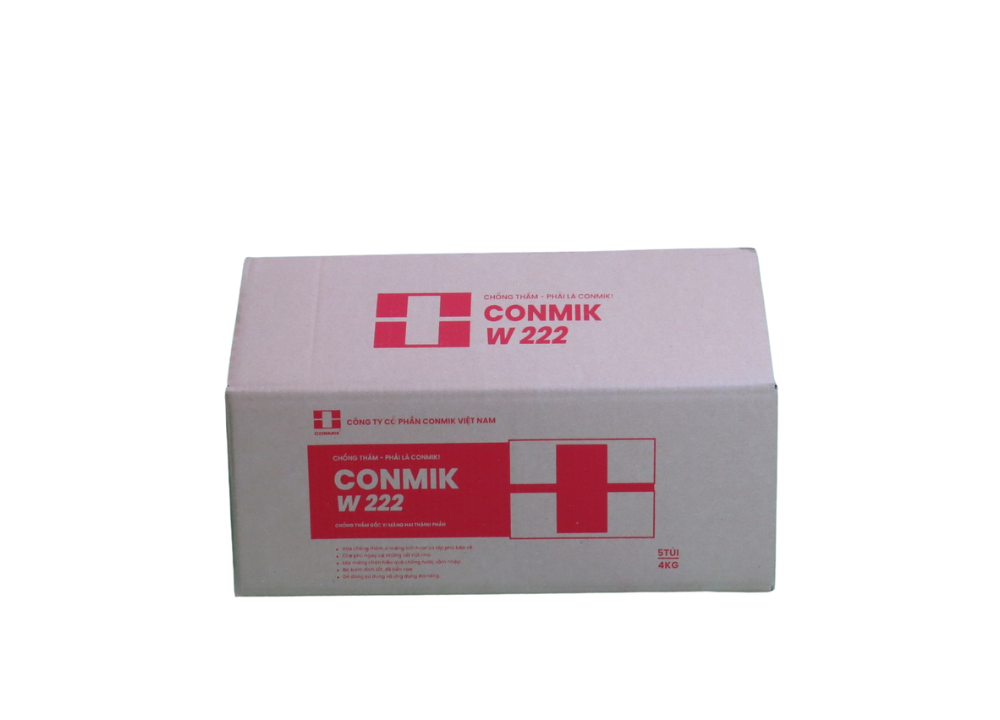 Conmik W 222 có chứa xi măng Portland, phụ gia làm dẻo, cát hạt cùng với latex và thạch anh loại tốt để tạo thành vữa mịn, bền, linh hoạt, có thể quét bằng bàn chải có độ bám dính tuyệt vời với bề mặt thi công.